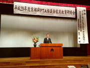 「教育の原点は家庭教育にあり。学校、地域、家庭が子供を包み込み、安全に健やかに育てよう。」 - «府PTA活動の取組発表»